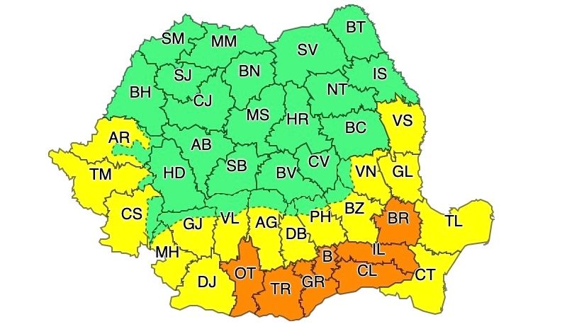 Zone afectate: județele Olt, Teleorman, Giurgiu, Călărași, Ialomița, Brăila, Ilfov și municipiul București